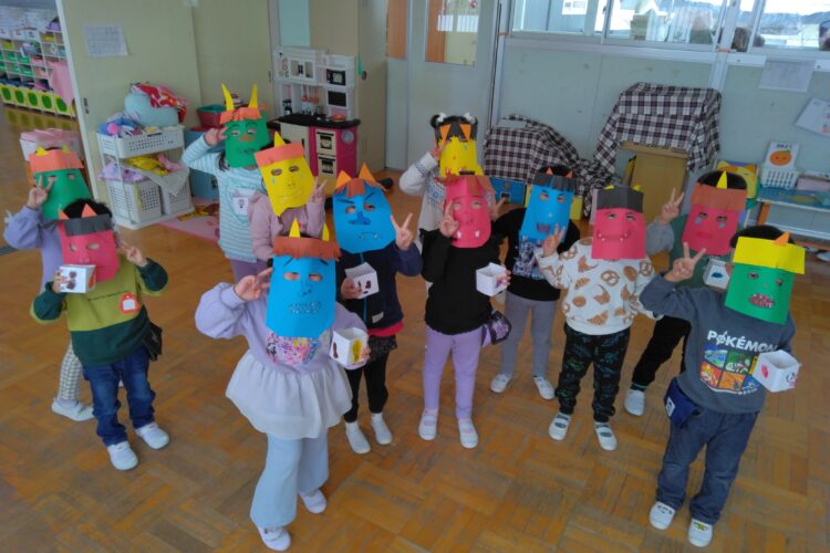2026.02.102月3日(火)、豆まきの集いを行いました! 各クラスで鬼のお面や豆入れを一生懸命作りました。集いでは、年齢に合わせて節分の由来などの話を聞いたり、自分のお腹の中にはどんな鬼がいるのかを考え、「おこりんぼ鬼」「泣き虫鬼」「 … 続きを読む