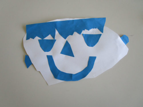 年長組さんは、画用紙を切って貼って…自分の顔を作りました。
