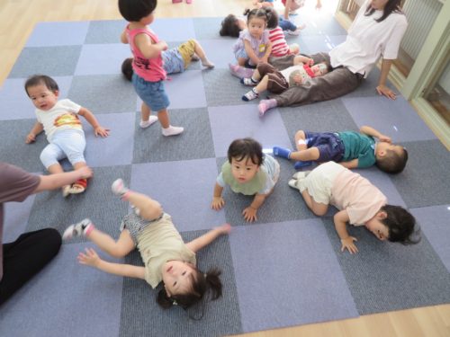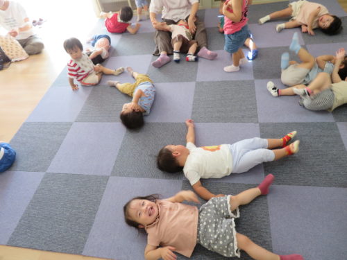 ひよこ・白パンダ組さんは、頑張ってお話を聞いたので、ごろごろ休憩タイム!