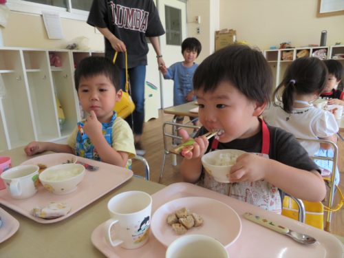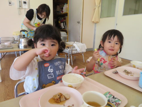 黄緑パンダ組さんはお給食をいただきま~す🍚