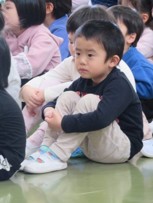 年長組さんから『ありがとうの会』の招待状をもらい、11日(火)ホールへ行くと、年長組さんが迎えてくれました✨