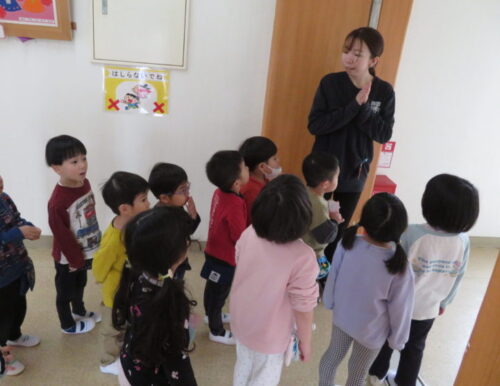 先生にお名前を呼ばれたお友達は、元気に「はい!」と返事をしていました。