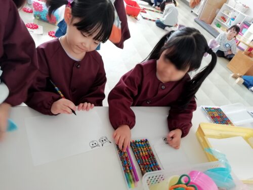 年中組・年長組さんは、ご挨拶のあとに園内の危ないところはどこかな?と探検に出かけたり、製作をしたり。
