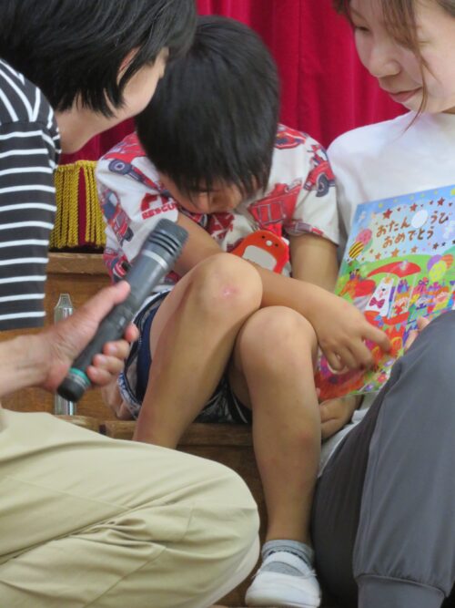 先生からお誕生カードのプレゼントをもらって、元気にインタビューにも答えてくれました!