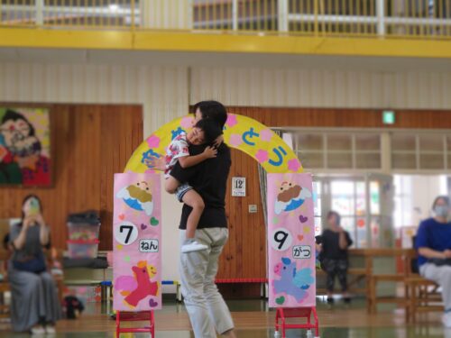 中には恥ずかしくて、先生と一緒に入場した子もいました。