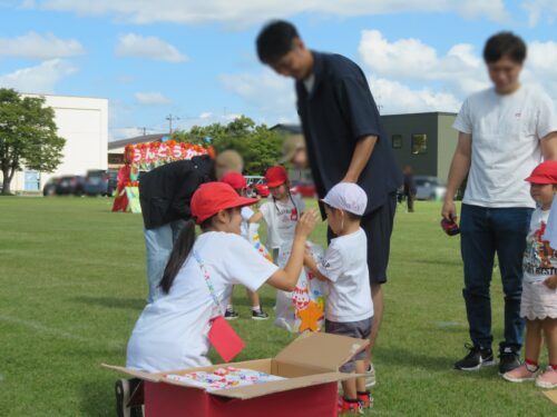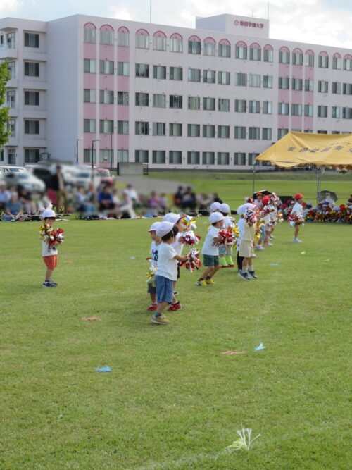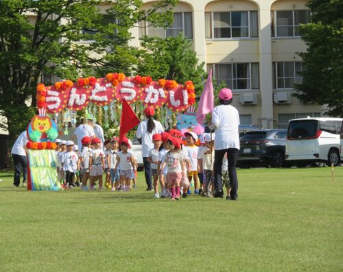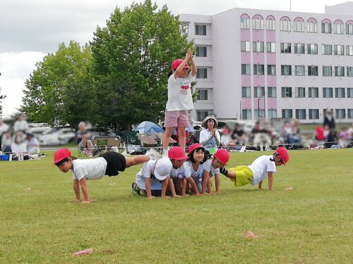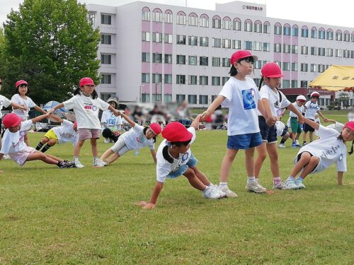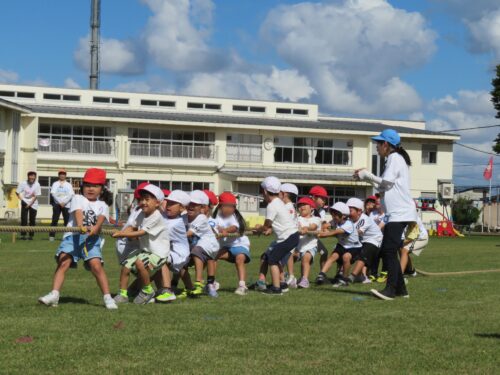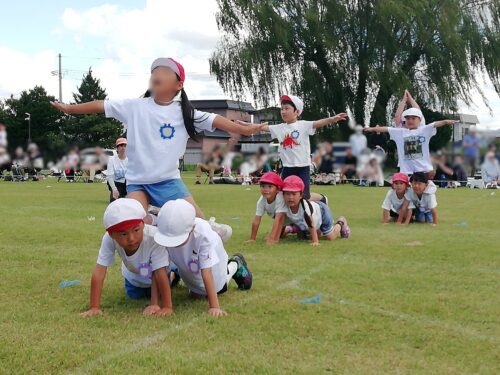 年長組は、力を振り絞った綱引き、白熱のリレーで会場を大いに盛り上げ、最後のリズム体操ではこれまでの練習の成果を発揮し、迫力と笑顔あふれる演技で温かい感動に包まれました。