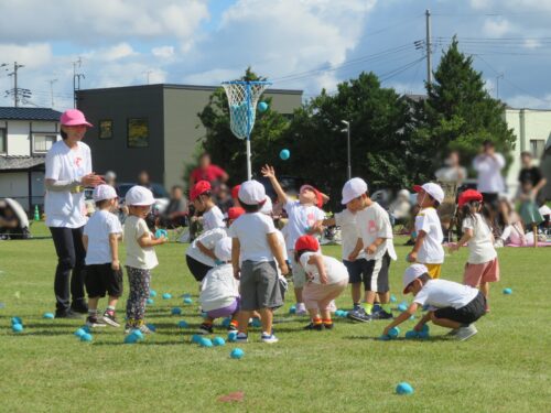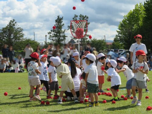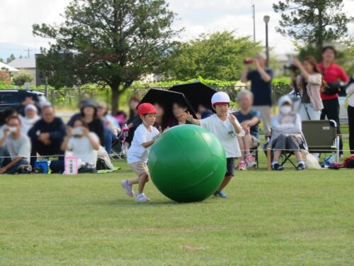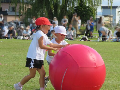 大玉に苦戦しながら、息を合わせて転がす姿に成長を感じました。