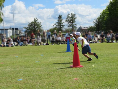 かけっこ・個人競技では、一人一人が力いっぱい走り抜け、ゴールを目指す真剣な表情ばかり😊