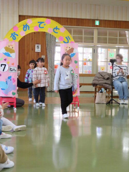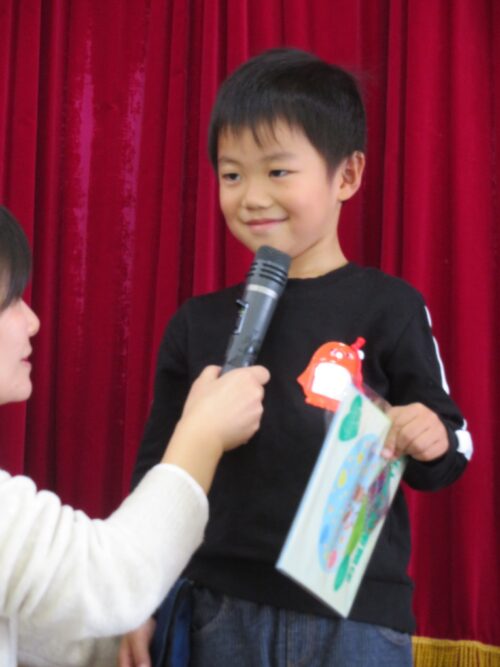 皆の前に立って緊張した様子の子もいましたが、担任の先生に誕生カードをもらったり、頭やほっぺをなでてもらったりすると、少し緊張がほぐれていました😄