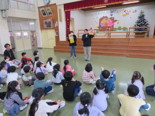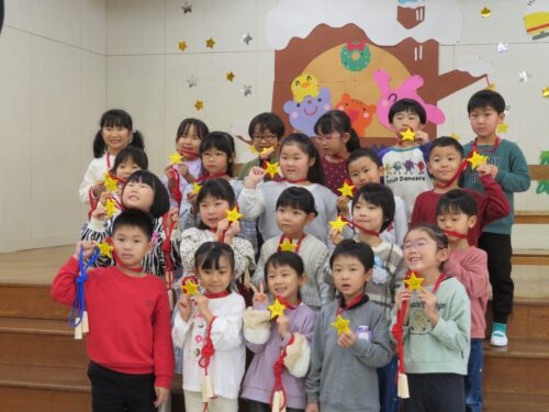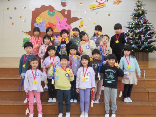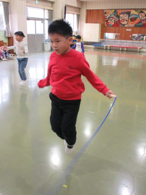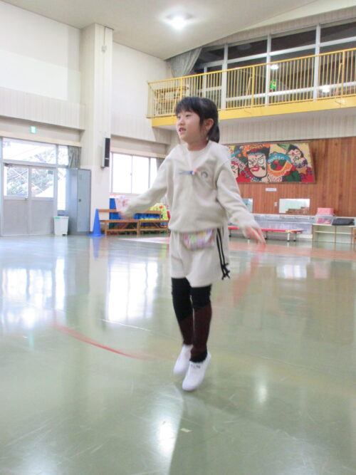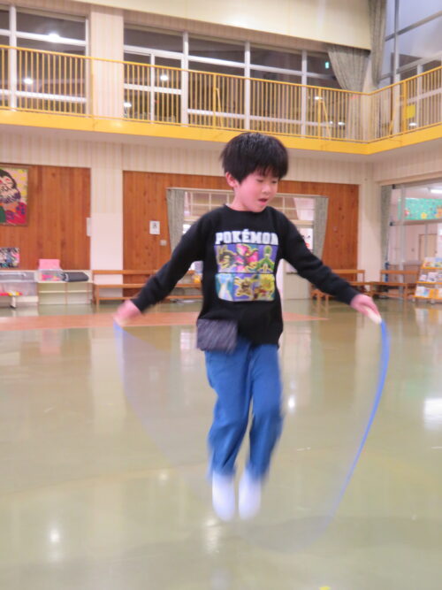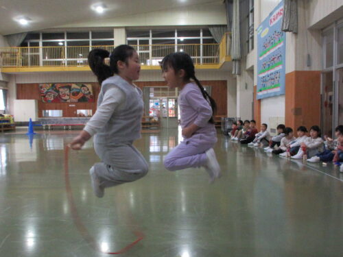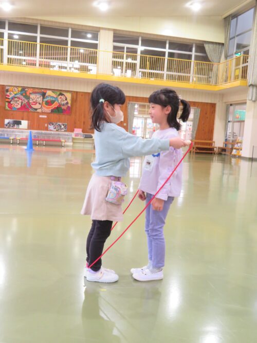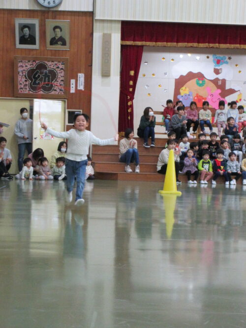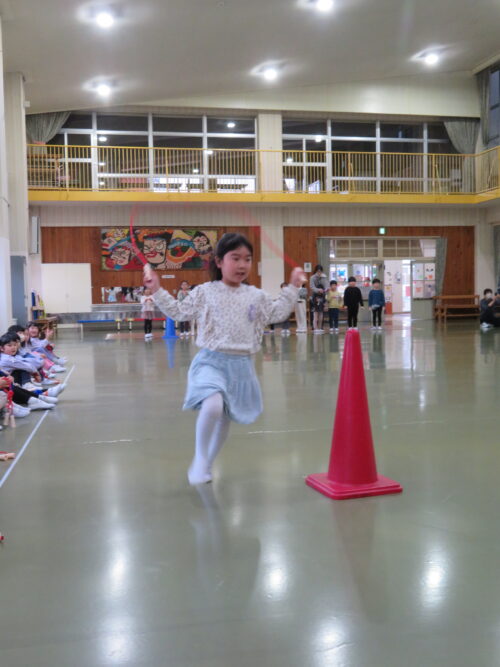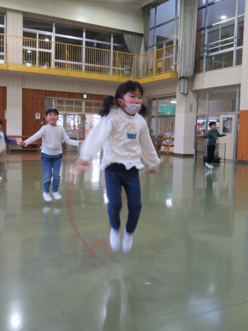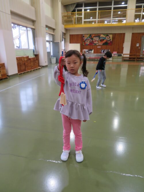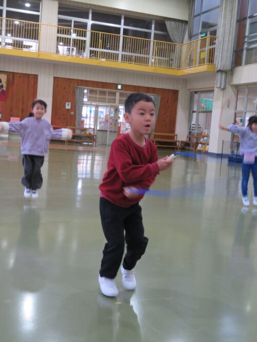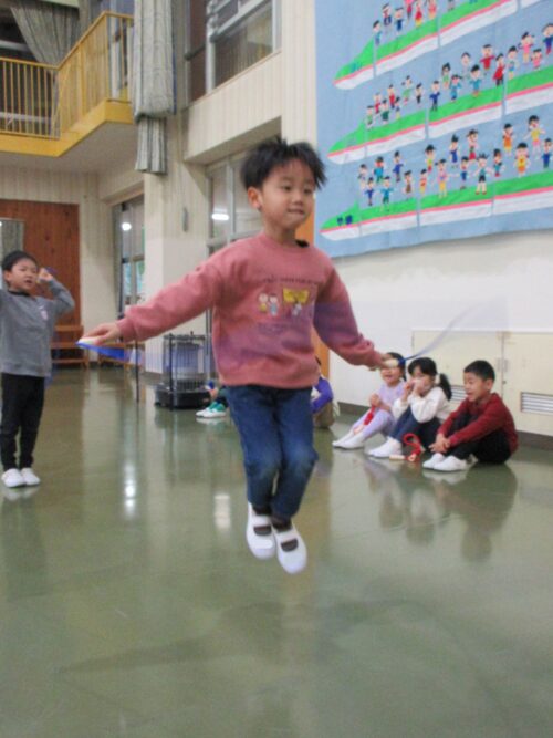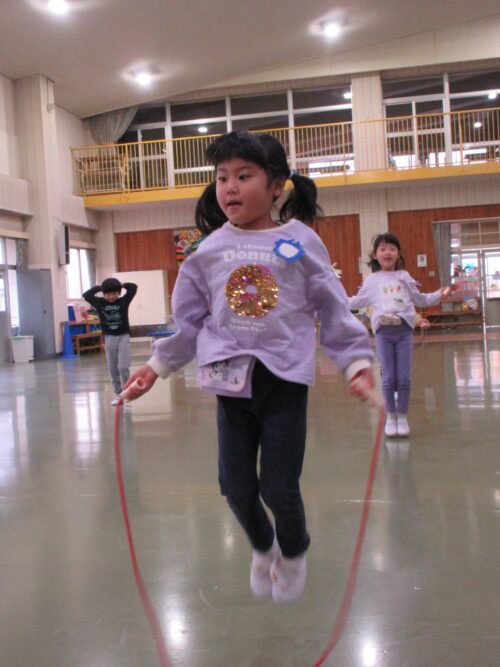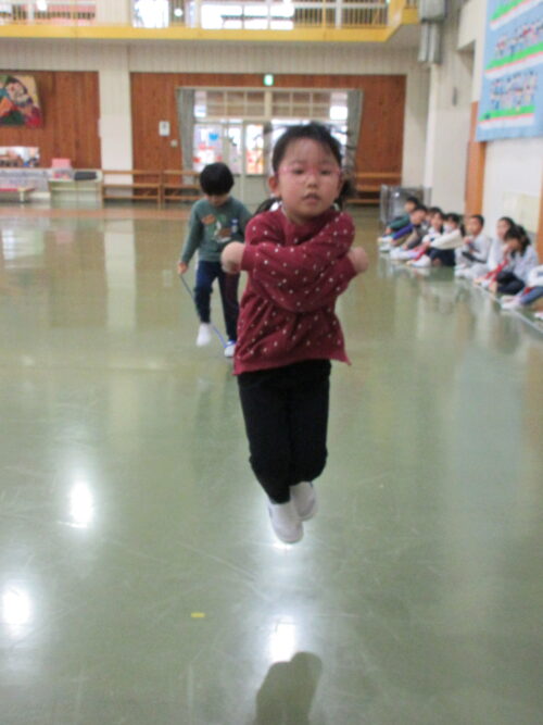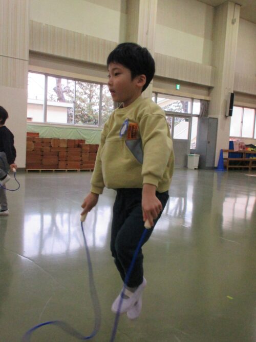 まえとび、うしろとび、かたあしとび、あやとびなど色々な技に挑戦する姿は、とても頼もしく緊張しながらも堂々と頑張る子ども達に、大きな拍手が送られました。なわとびをとぶのもそうですが、結ぶのも上手な年長組さんでした😄