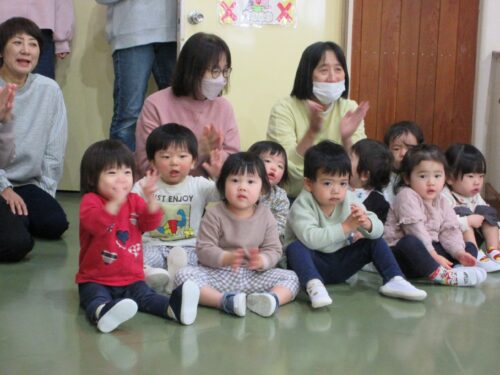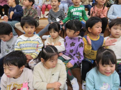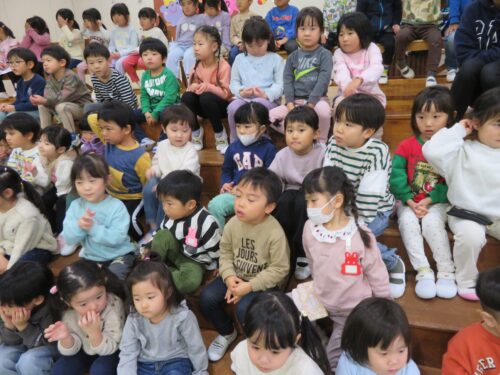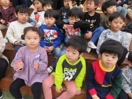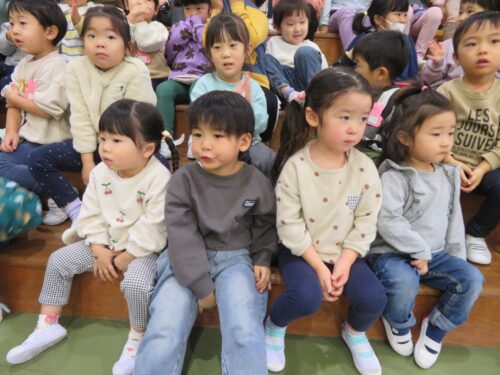 客席のあひる組・パンダ組・年少組・年中組さんも、「頑張れー!」と元気いっぱいの応援、熱いまなざしで見ていた子もいました。