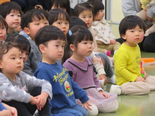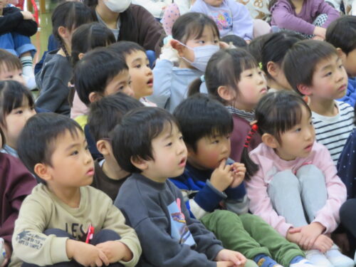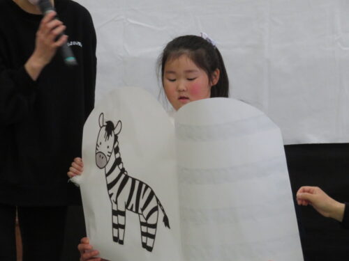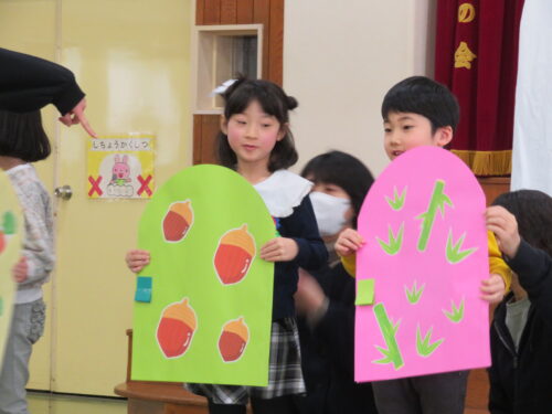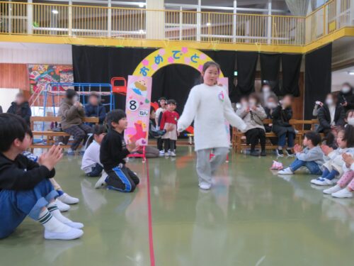 お楽しみの前に、1月生まれの年長さんに手伝ってもらい、このドアは誰のドアかな?とクイズに挑戦!皆もすぐにわかりましたが、年長さんも大正解💮