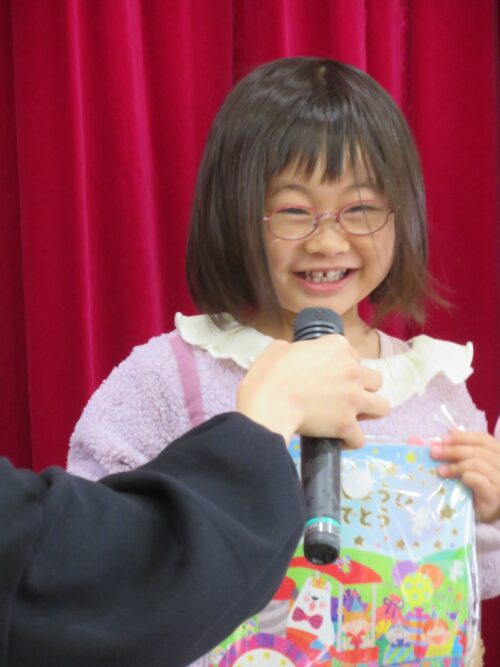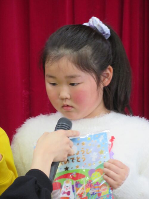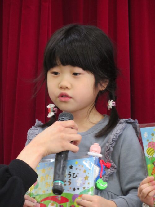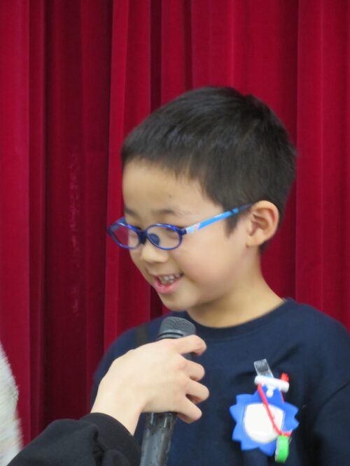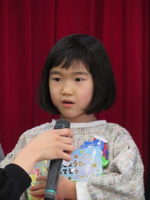 インタビューでは、行く予定の小学校やランドセルの色、好きな給食のメニューや遊びなどを元気に答えてくれました。