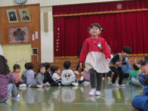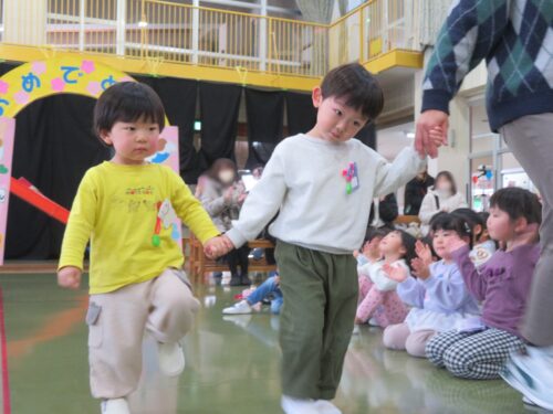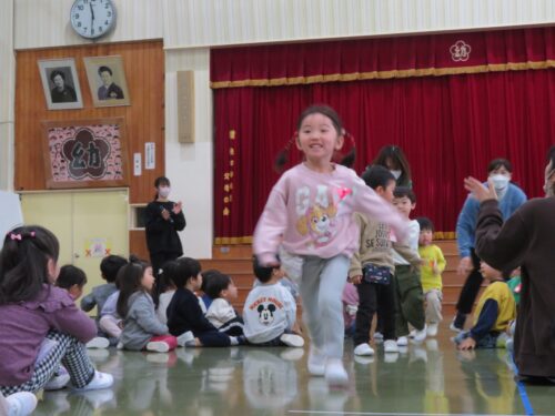 クラスの友達とタッチをしたり恥ずかしくて小走りになったりと、かわいらしい姿が見られました。